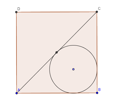 Chapter Two presents several “geometric curiosities” including several nice examples of Japanese sangaku puzzles. An example appears below. The circle is tangent to the diagonal and both sides. The problem is to determine the radius of the circle in terms of the side of the square.