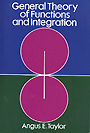 At the risk of shedding all pretense that I am anything but a curmudgeon, let me start off this review of Angus E. Taylor’s General Theory of Functions and Integration by saying that “they don’t make ’em like that anymore!” In fact, they weren’t even making them like that when I was a UCLA student in the 1970s, given that Angus Taylor, a UCLA stalwart and classic, was no longer in evidence there: he had chaired the department at UCLA in the 1960s and by the time I got there had moved on to his chancellorship at UC Santa Cruz. He had been a major force in building UCLA’s department up in the preceding decades, and there was no doubt that analysis was very powerfully represented.