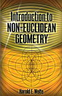Harold E. Wolfe’s Introduction to Non-Euclidean Geometry is an excellent text that takes the axiomatic approach. The attention to history is a delight. The first three chapters are consumed with the discovery of non-Euclidean geometry. He begins with a careful study of Euclid’s postulates and common notions, discussing some of its gaps in rigor that led to Hilbert’s revisiting them. Wolfe then works through a variety of non-proofs of the parallel postulate. This was wonderful to read, as we get to see the greats fall into the same traps we warn our students about. It also gives an effective working understanding of how these guys were doing mathematics. We then proceed to the discovery of non-Euclidean geometry, wherein we learn that the parallel postulate really is independent and that Gauss was a pretty smart guy.