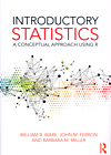 The claim for a “conceptual approach” is a more common one, and is not clearly defined by the authors. It is a claim more often made than delivered upon. The book does have some strengths that could be given this label, though the authors do not stress that. The general presentation is verbal, with clearly written and carefully thought-out explanations that are in at least the top 10% of current textbooks. In addition to using R to crunch numbers, the authors also use it to carry out many simulations that shed light on abstract concepts. These demonstrations, and their code on the book’s website, are probably worth the cost of the book. Unfortunately, this “conceptual approach” does not extend to the exercises. Those come in two flavors. First are some multiple-choice questions at the “did you read the chapter” level. These are quite good. After those come a very small number (say 1–4) of other exercises which are pretty much at the undergraduate cookbook level stressing computation and not asking for thought, interpretation or evaluation of assumptions. As a whole, the exercises are far below the level of those in any introductory college textbook by David Moore, or any textbook commonly used in the high schools for AP Statistics.