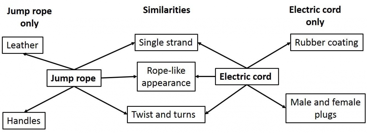 For example, let’s say you want to look at a jump rope and an electric cord. You might produce the following diagram to describe these two objects.