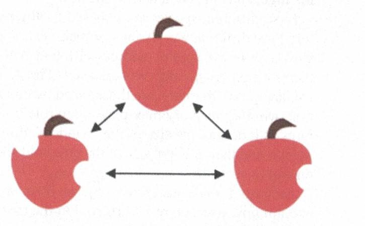 But what about a change to an object itself. Let’s say we have an apple and there are successive bites taken from the apple. Can we discuss the change to the apple as it is consumed and transformed for a whole apple to a core? Yes, we can. Figure 2 shows the transformation and Figure 3 shows a structure of the change as a groupoid.