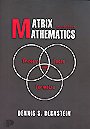 Matrix Mathematics is a reference work, not a textbook or a monograph. Each chapter begins with basic background information, followed by matrix “facts” of all kinds: identities, properties, formulas, inequalities… Not all the results presented have proofs or direct references to the bibliography. The text is studded, however, with helpful remarks and references to the literature, and there is a supportive “Notes” section at the end of each chapter. For example, in browsing through Chapter 8 I found a useful result on positive semidefinite matrices, but there was no proof or reference given. The notes narrowed my choice of sources to five papers and I eventually located the proof.