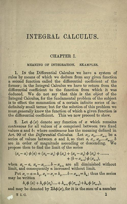 Frank J. Swetz (The Pennsylvania State University), "Mathematical Treasure: Isaac Todhunter's Integral Calculus," Convergence (July 2018)