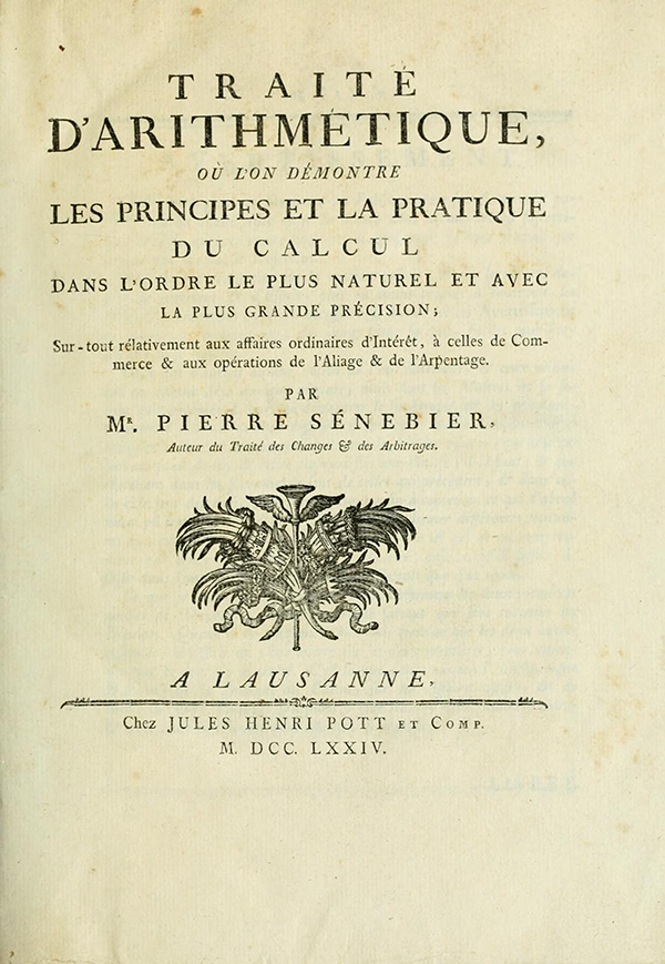 Pierre Sénebier was an eighteenth century French writer of books pertaining to business. His 1774 Traite d’Arithmetique was a concise and detailed book on business arithmetic.