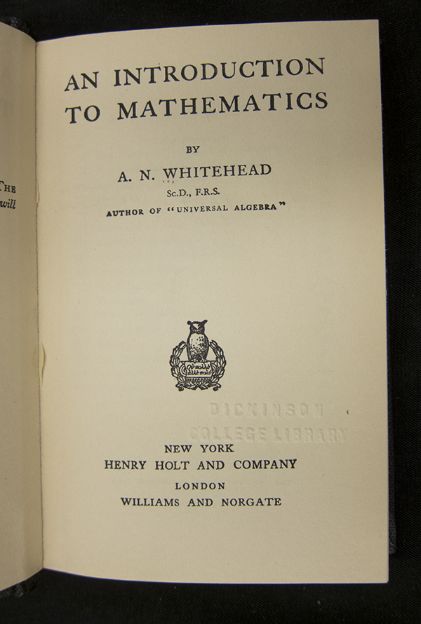 Alfred North Whitehead (1861-1947) was a mathematician, logician, and philosopher. He is perhaps known best for founding, with his former student Bertrand Russell (1872-1970), the logicist school of mathematical thought and for his and Russell’s Principia Mathematica (1910-1913). But Whitehead was also an educator and teacher. His Introduction to Mathematics (1911), whose title page is shown above, was intended for the common student.